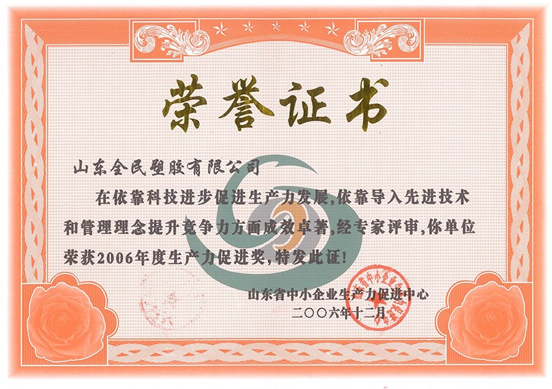 省級生產(chǎn)力促進獎榮譽證書-2006.12